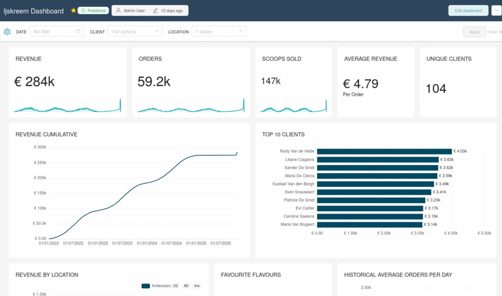 If your organisation is tech-savvy, we can also create dedicated python development environments that can connect using secure credentials to the data you have. In the above example, we use Facebook’s Prophet model to predict our daily ice cream sales for the coming year. This data is available in the warehouse for further consumption.
