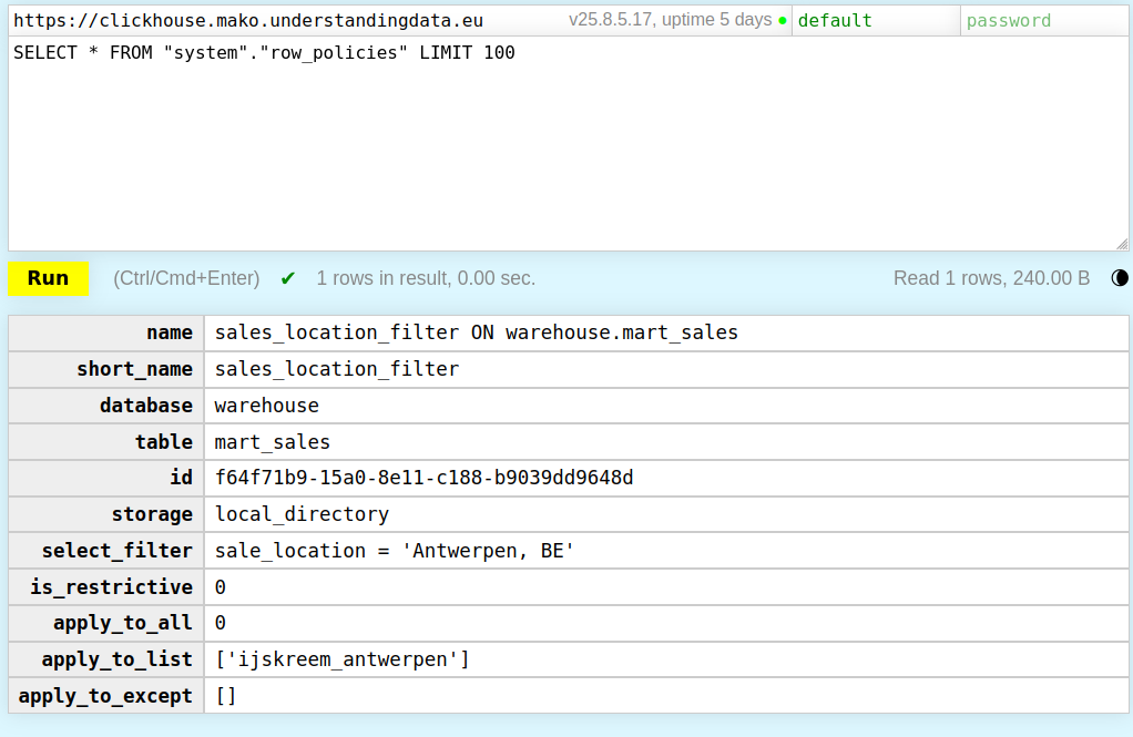 Our data warehouse is the heart of the insights module. All data ends up in the warehouse. As you can see, we have several schema on the left, each with their own tables.